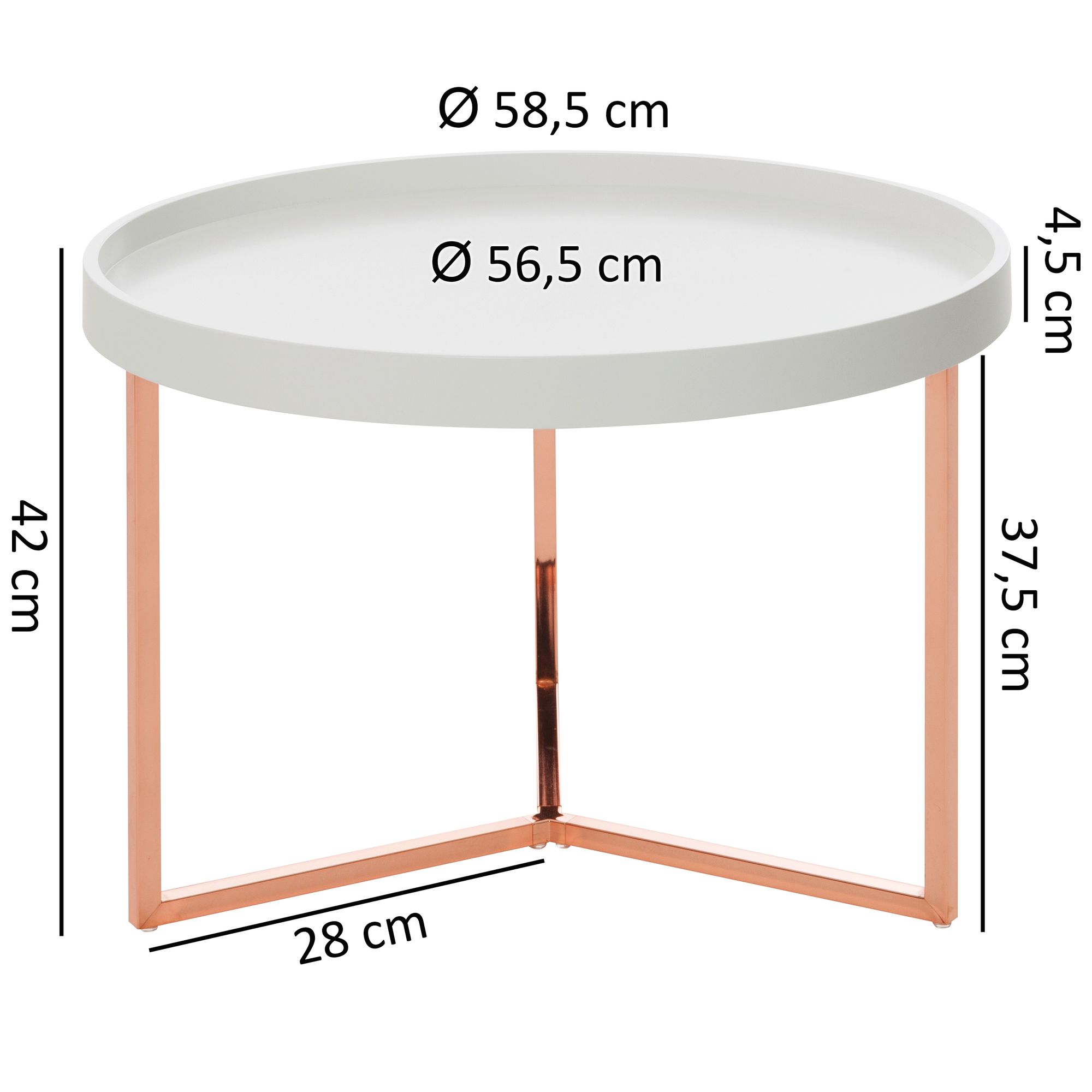 Kulatý konferenční stolek bílý a měděný kov | Bílá dřevěná deska | 58,5 x 42 x 58,5 cm
