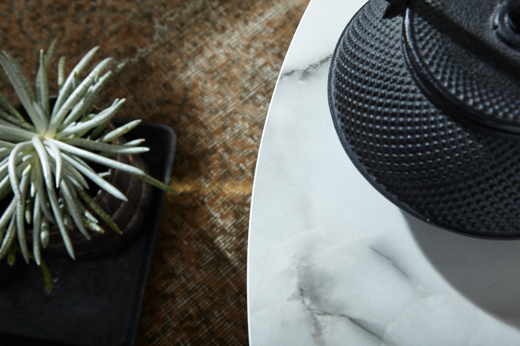 Tento elegantní kulatý konferenční stolek má bílou mramorovou desku s vysokým leskem, uloženou na lesklém zlatém kovovém rámu, dodávajíc moderní a luxusní vzhled vašemu obývacímu pokoji.