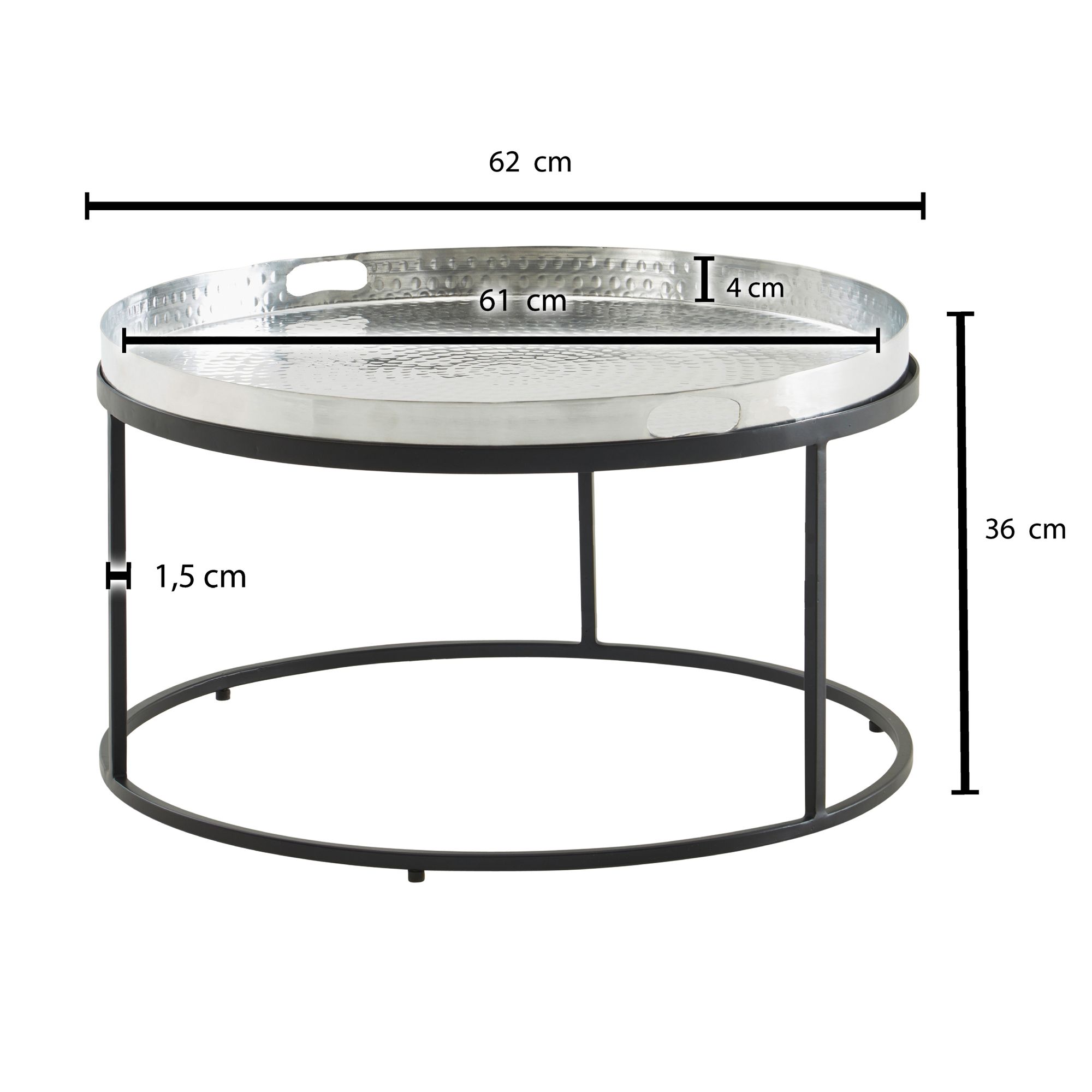 Informace o výrobku "Kulatý konferenční stolek kladívkovaný kov hliník stříbrná/černá | Moderní design | Rozměry 62x62x36 cm"