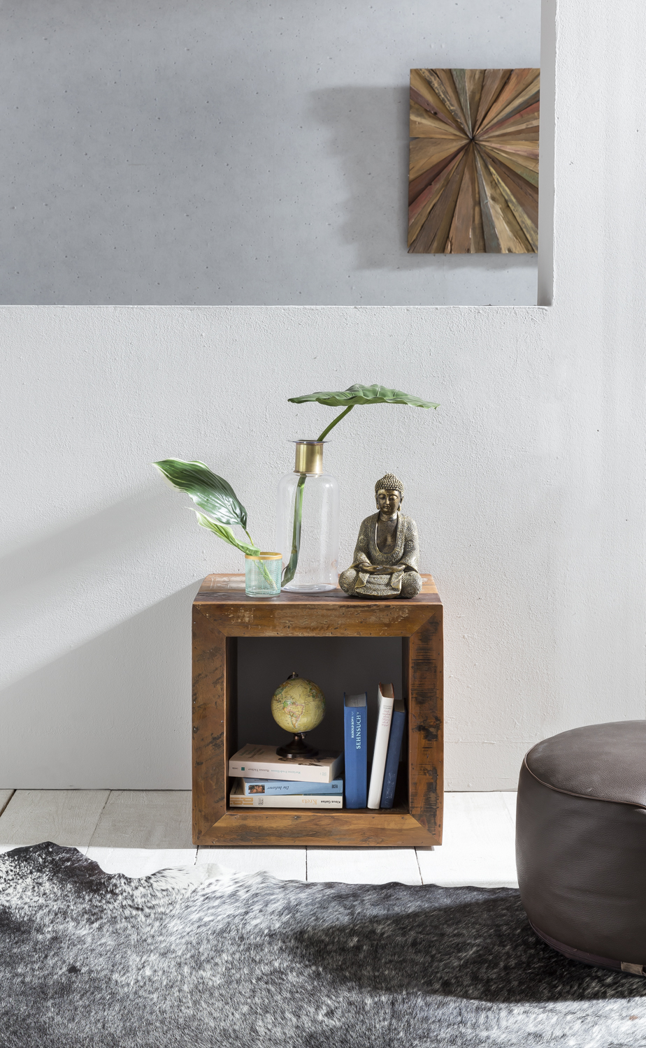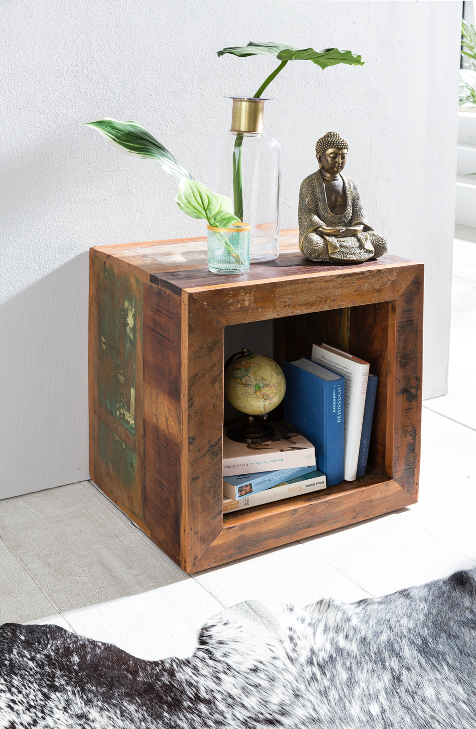 Odkládací stolek Kalkutta | Masivní recyklované dřevo hnědé | 45 x 45 x 35 cm
