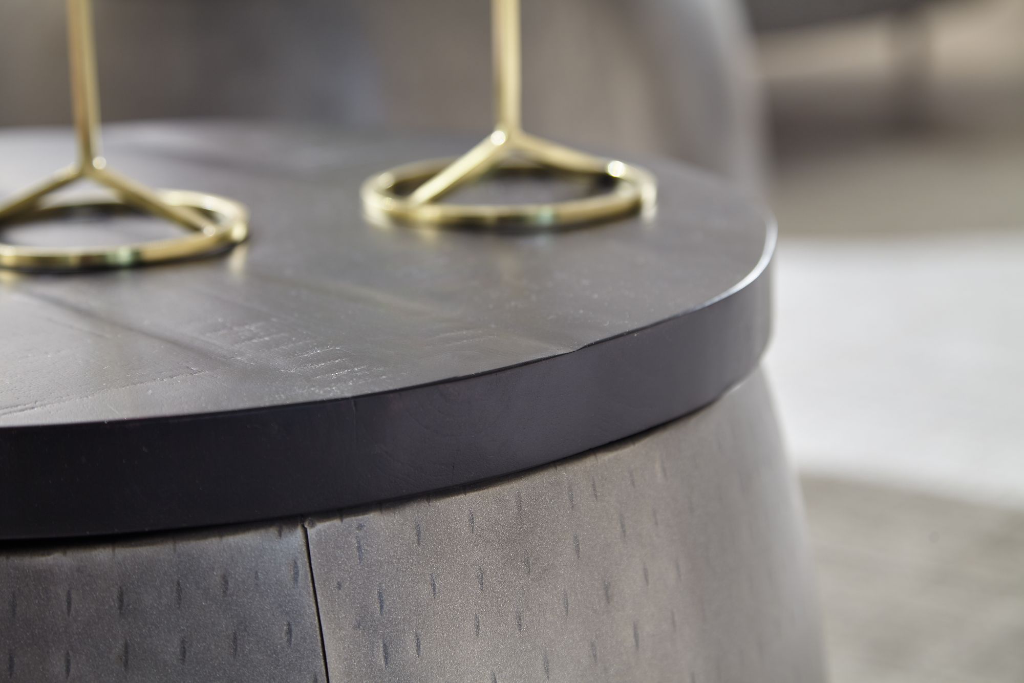 Přidejte industriální styl do vašeho obývacího pokoje s touto sadou 2 kulatých konferenčních stolků s propracovaným designem. Desky jsou vyrobeny z černého lakovaného recyklovaného masivního mango dřeva, umístěné na stříbrných kovových rámech, které kombinují odolnost a rafinovanou estetiku.
