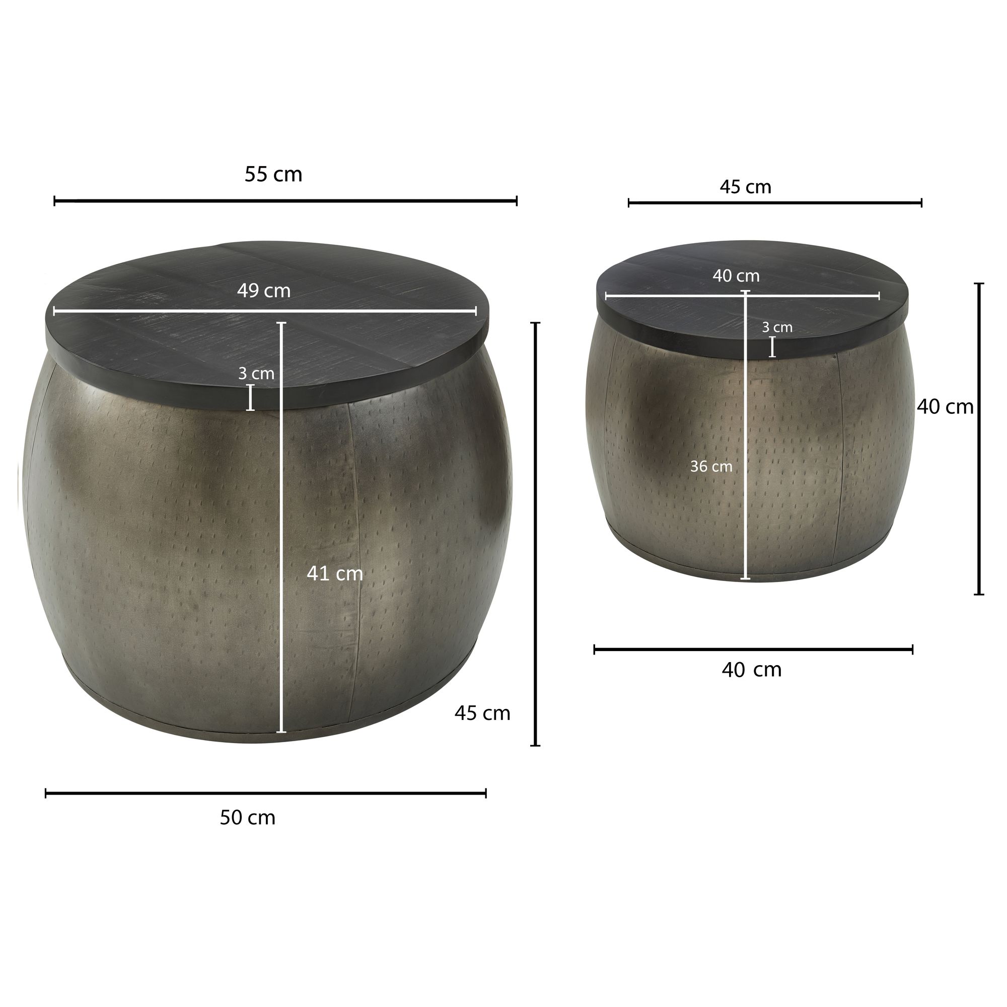 Informace o výrobku "Sada 2 konferenčních stolků mango masiv černý 55/45x45/40x55/45 cm | Stříbrný kovový průmyslový | Kulatý s úložným prostorem"