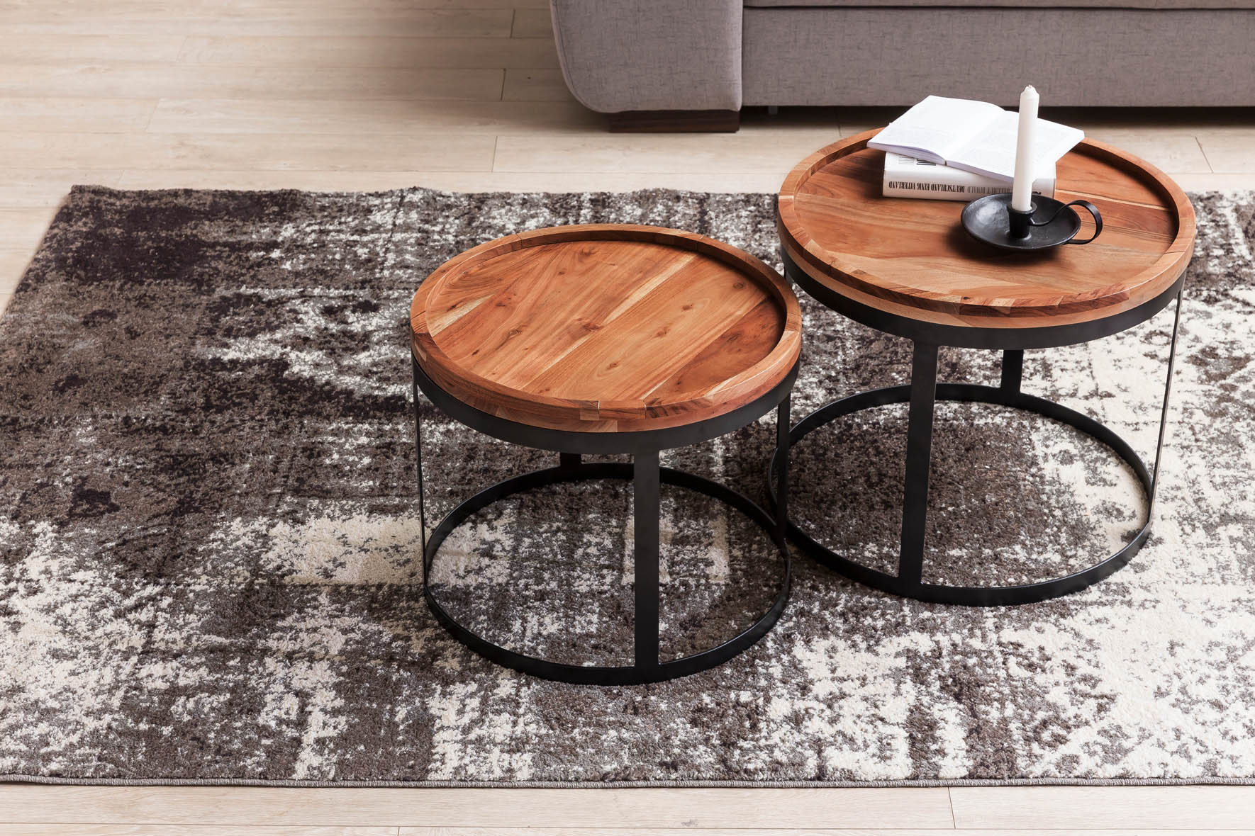 Tato sada 2 odkládacích stolků AKOLA BAGLI z masivního dřeva Sheesham spojuje eleganci a praktičnost pro váš obývací pokoj. Kulaté desky s dekorativním okrajem poskytují dostatek prostoru a díky přírodnímu dřevěnému provedení vytvářejí příjemnou atmosféru.