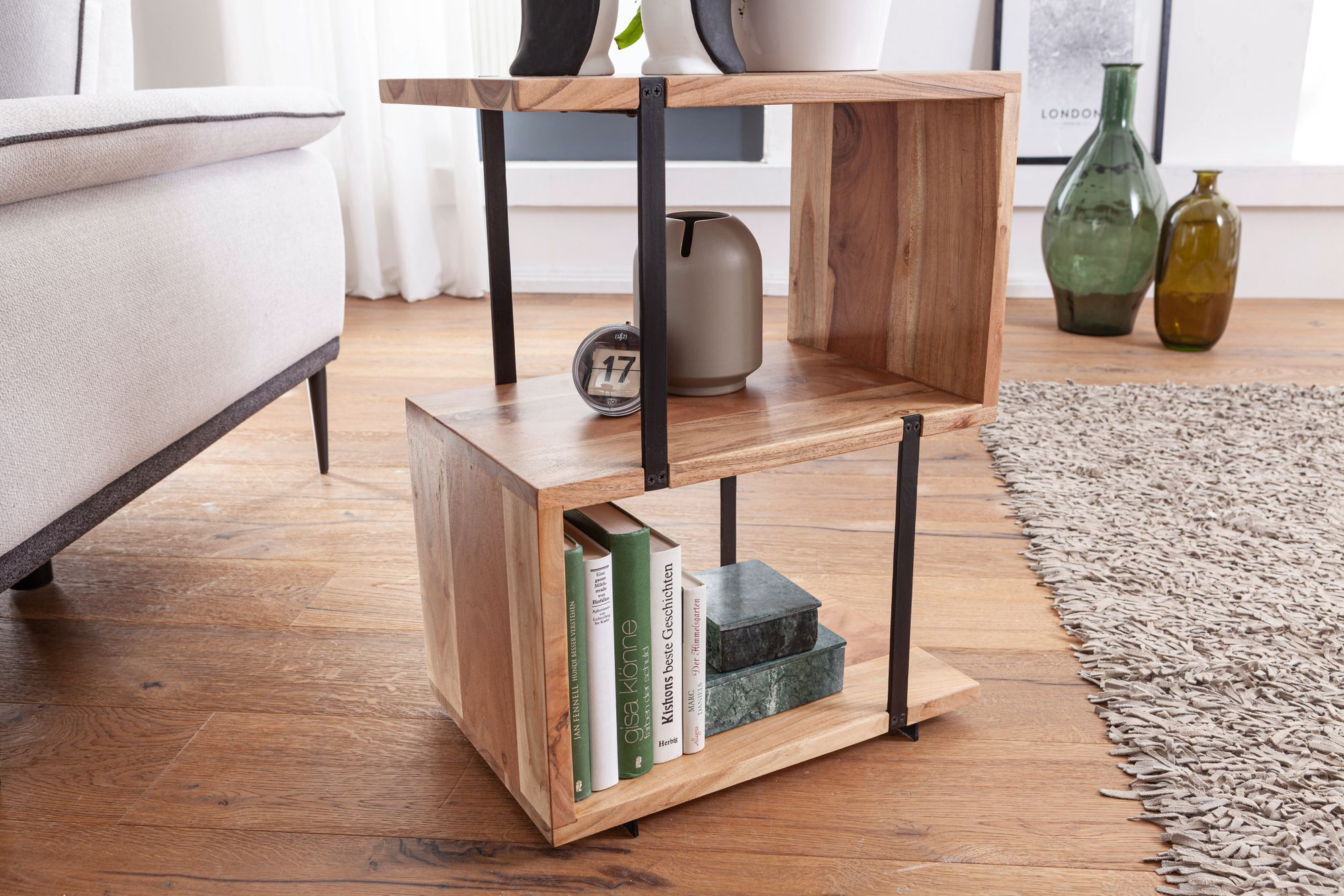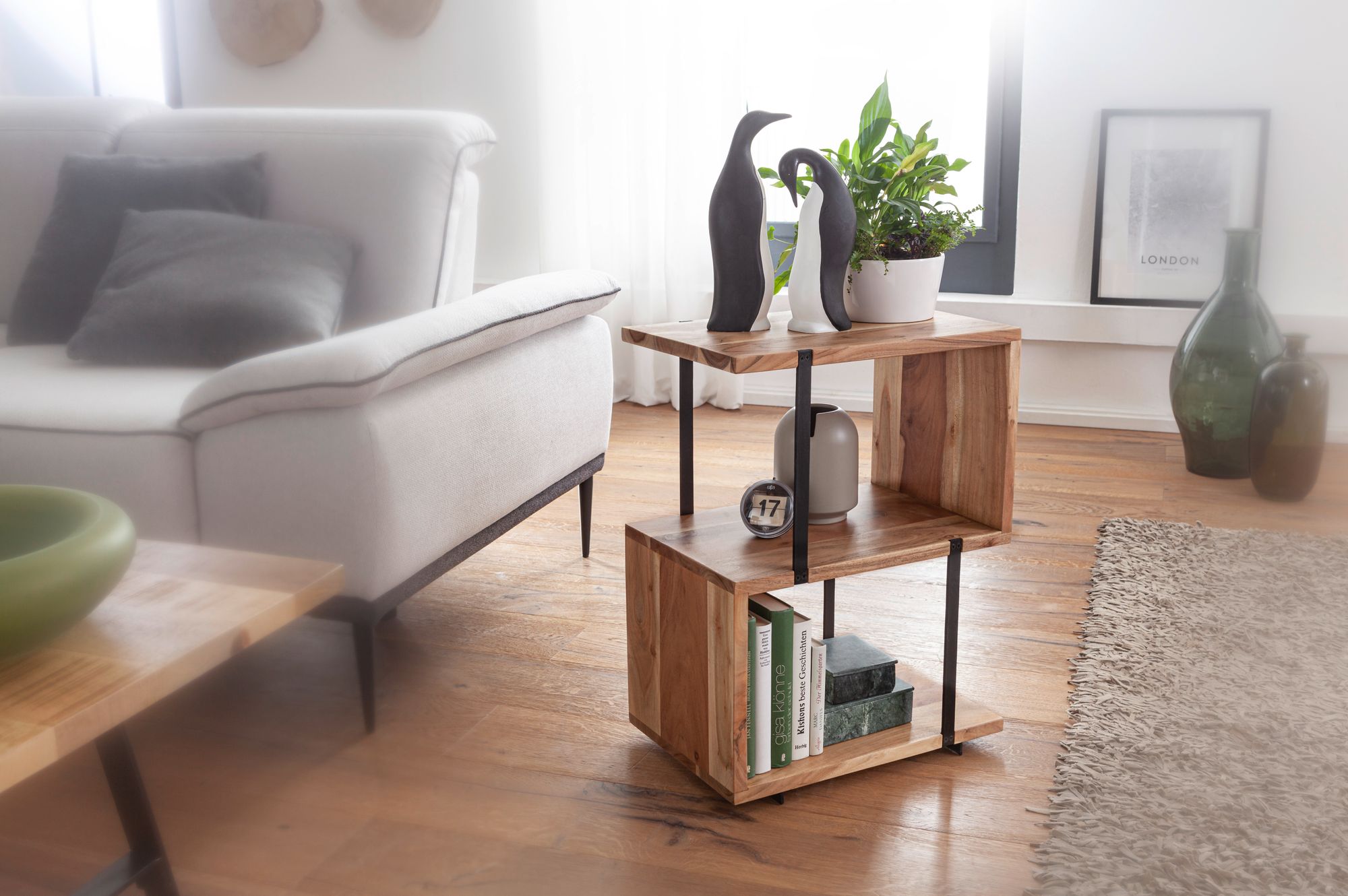 Stolek v tvaru S Akácie kov hnědá černá | 45x60x30 cm | Industriální designový stolek