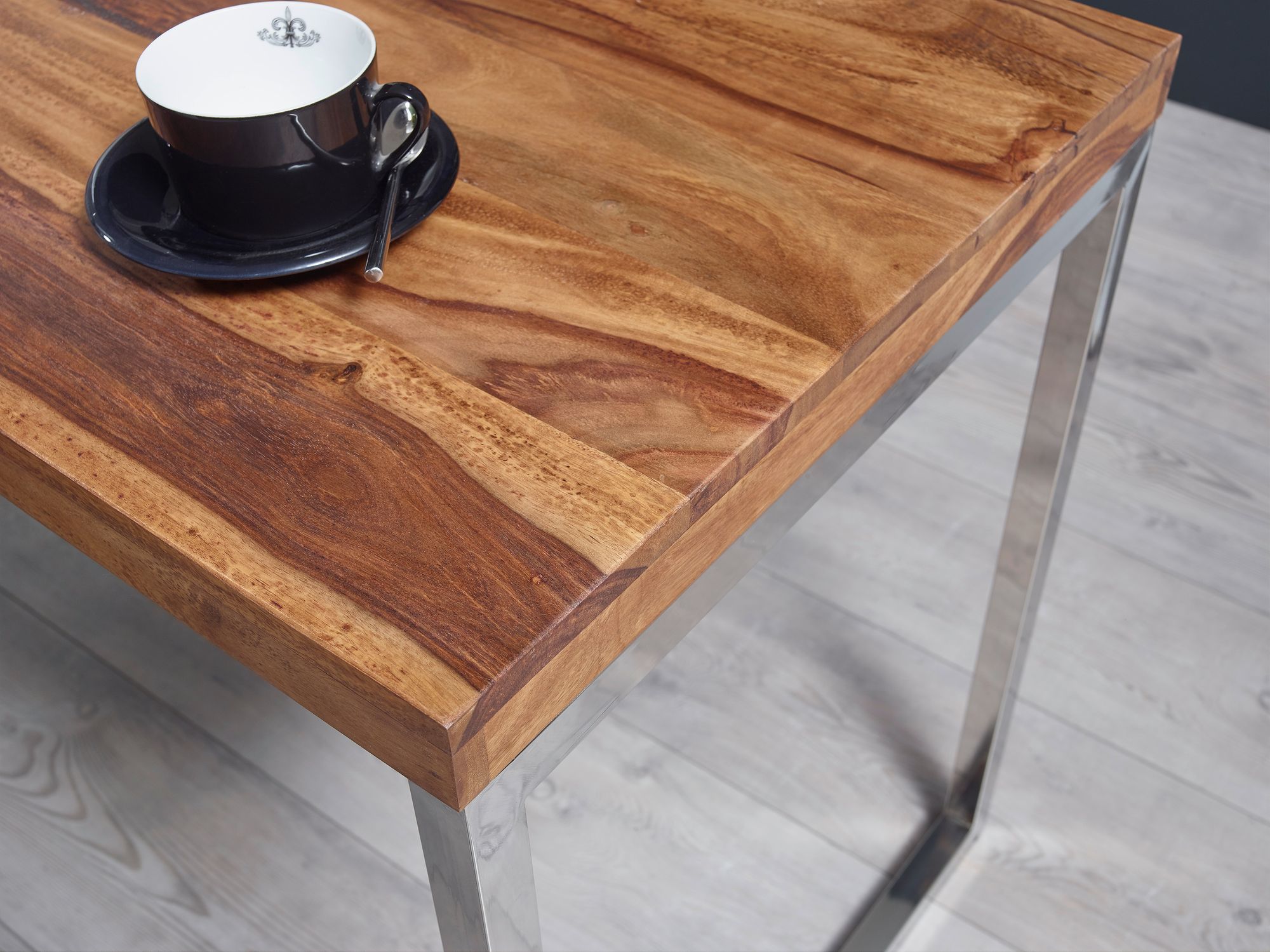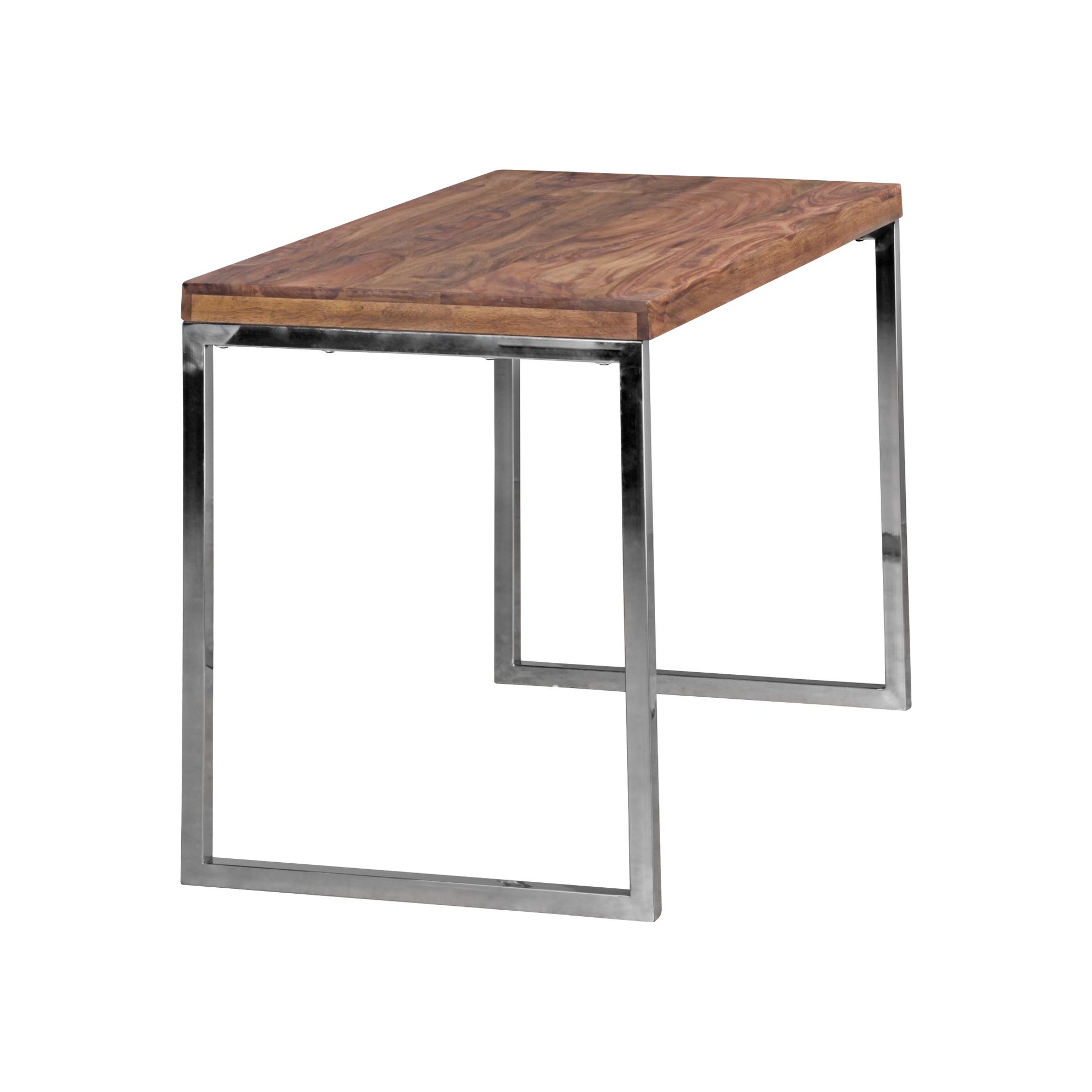 Psací stůl GUNA z masivního dřeva Sheesham kombinuje eleganci a odolnost pro vaše pracovní prostředí. Povrch z přírodního dřeva s průhledným lakem a chromované kovové nohy vytvářejí teplý a moderní kontrast. Navržen ve venkovském stylu, nabízí pohodlný a efektivní pracovní prostor.